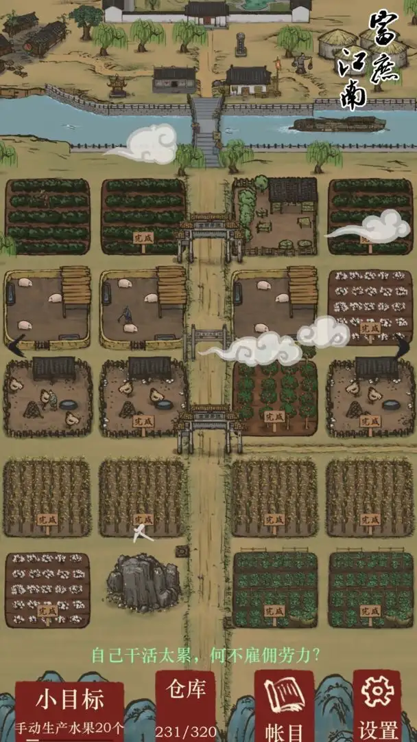 《富庶江南》是一款极具国风韵味的模拟经营手游,带你回到千年前的江南水乡,体验开荒种田、建造产业、经营商铺、探索物种的乐趣,最终成为江南首富!