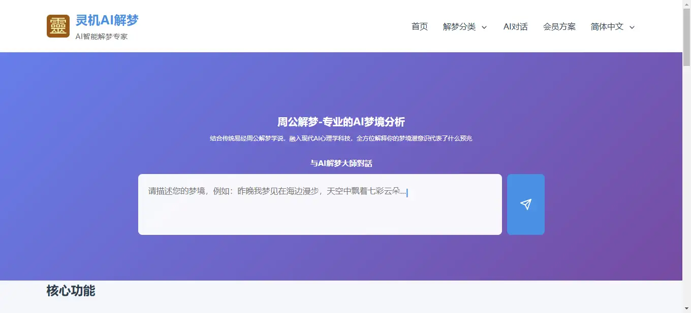 在探索潜意识的旅程中,梦境解析一直是一个神秘而迷人的领域。今天,我将为你介绍一款强大的在线智能周公AI解梦工具——灵机AI解梦。这款工具融合了传统《周公解梦》理论与现代AI算法,提供实时自然语言交互的梦境解析服务,帮助你深入探索潜意识世界。
