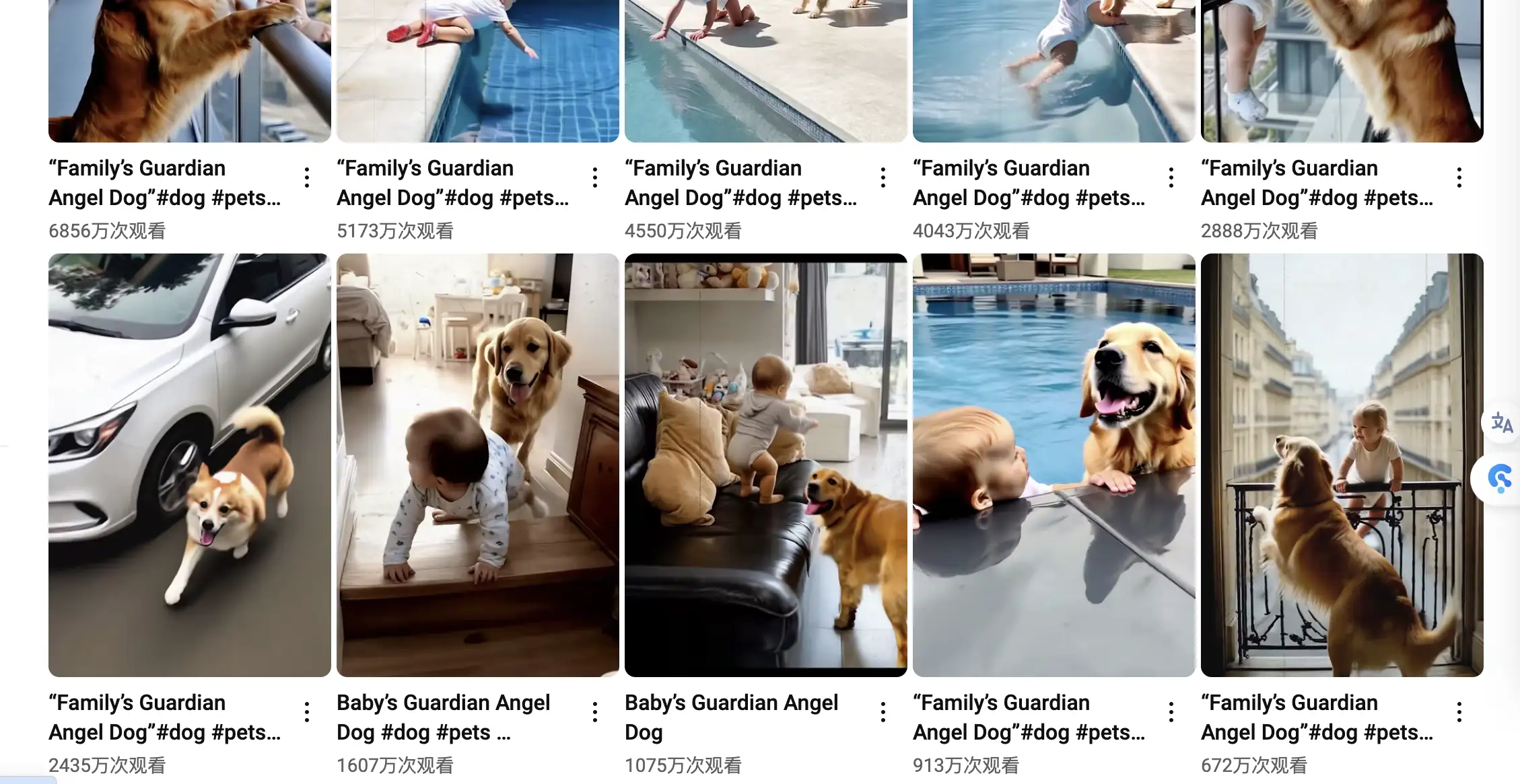 在YouTube Shorts的AI赛道上,一个名为“天使狗狗”(Angel Dog)的变种赛道近期异常火爆。这个赛道的对标账号在短短2个月内发布了47个视频,播放量却超过了3.5亿次!这一惊人的成绩不仅吸引了大量观众的关注,也引起了众多创作者的兴趣。今天,我们就来详细拆解一下这类视频的制作方法,帮助你在这个赛道上打造出自己的爆款视频。