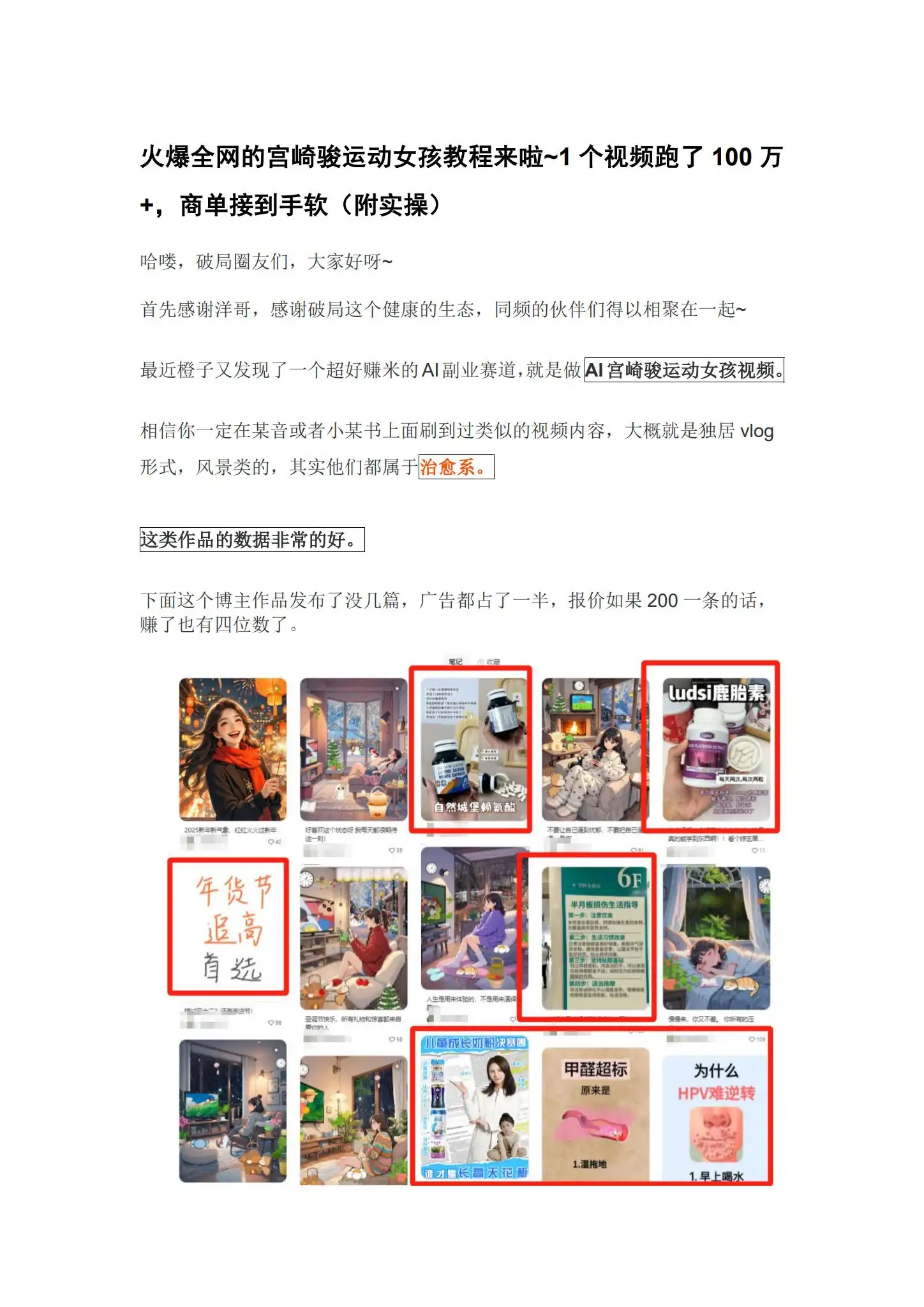 通过AI技术制作宫崎骏风格的运动女孩视频,不仅简单易学,还能轻松接到商单,实现收益。这类治愈系内容在各大平台上表现优异,深受用户喜爱。希望这篇文章能为你提供有价值的参考,帮助你在AI副业赛道上取得成功!