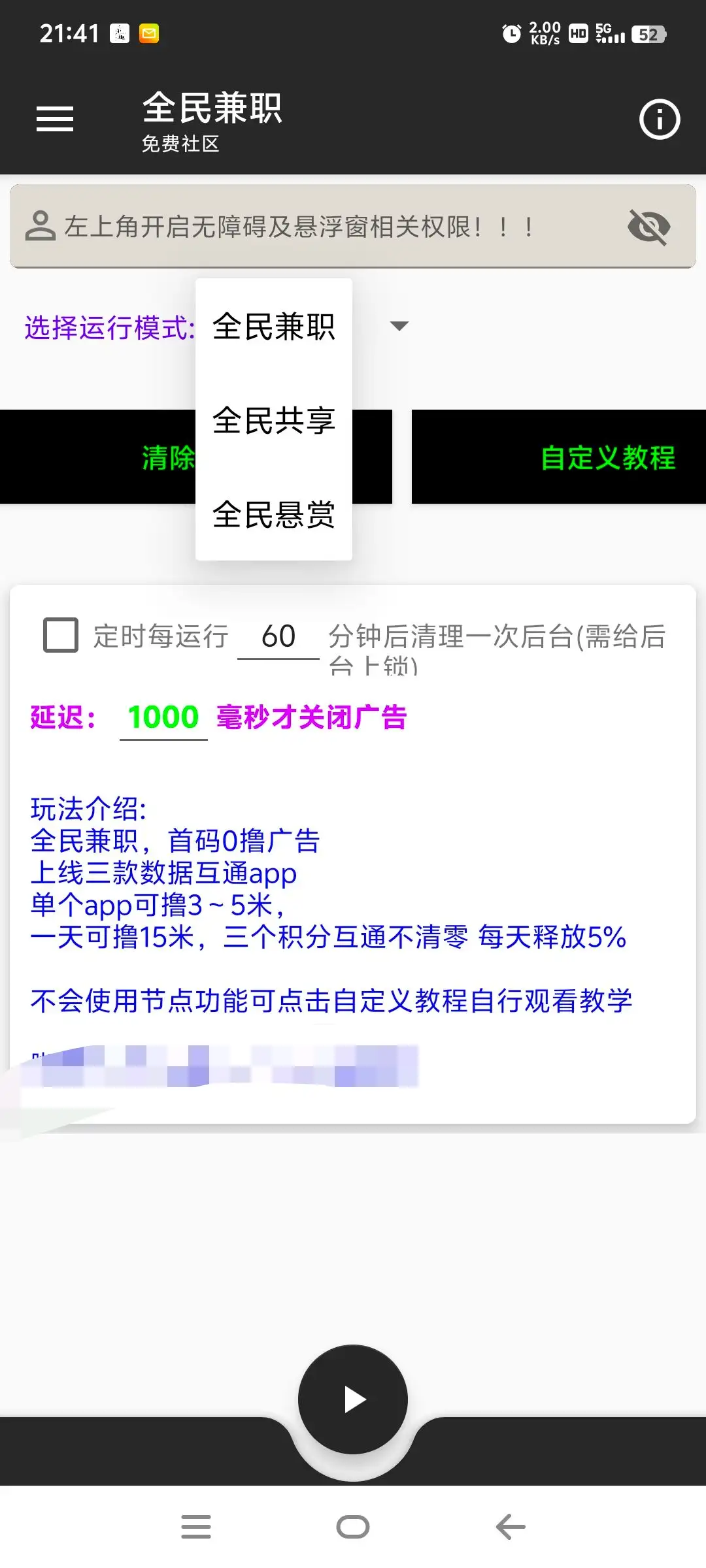 在互联网副业领域,挂机项目一直以其简单易操作、收益稳定的特点受到许多人的喜爱。今天,我要为大家介绍一个全新的挂机项目——多平台全民悬赏广告掘金挂机项目。这个项目支持在3个平台上自动挂机看广告、撸红包,操作简单,收益可观。通过矩阵操作,单机收益可达50+,非常适合新手和有经验的副业玩家。