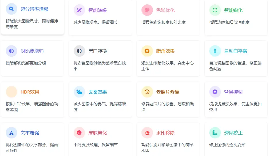 - 文本增强 :提高文档和文字图像的清晰度,使文字更加易读。
