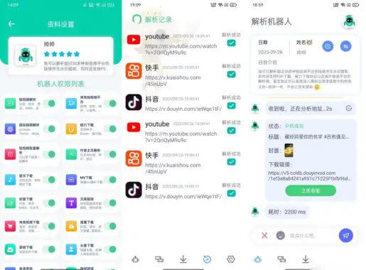 短视频已经成为人们获取信息和娱乐的重要方式。然而,许多用户在使用短视频平台时,常常遇到无法下载无水印视频、提取文案或下载头像壁纸等问题。今天,我要为你介绍一款非常实用的工具——安卓解析机器人。这款软件不仅能够一键下载无水印视频,还支持无损音乐下载、文案提取、头像壁纸下载、作者主页解析等多种功能。