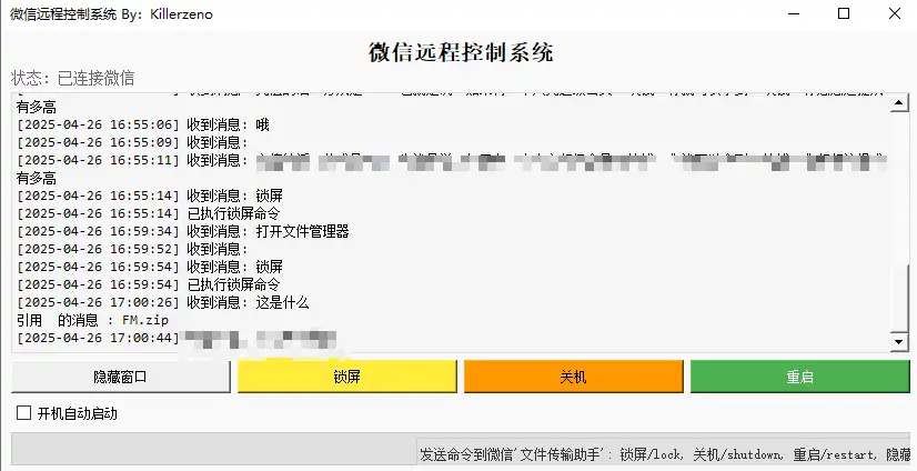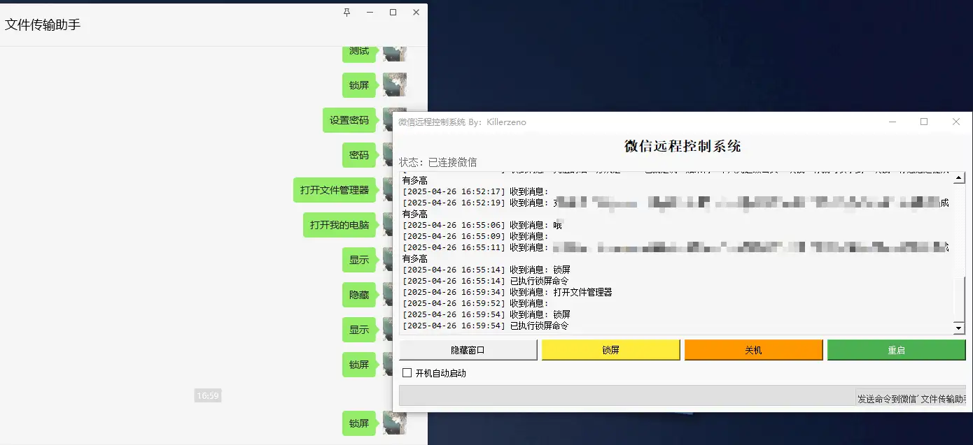 该工具基于 Python 开发,通过监听微信文件传输助手的聊天数据实现指令识别,支持后台运行无需保持聊天窗口开启。核心优势包括: