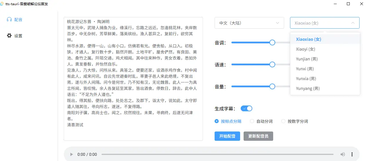 - 100 + 微软官方语音:覆盖普通话、英语、粤语、日语等 10 余种语言,包含晓晓、云希、云扬等热门主67播。