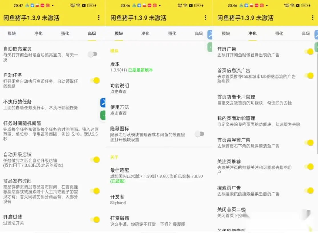 - 原则上闲鱼助手,只适配于7.1.30-7.8.80版本,其他的也行
