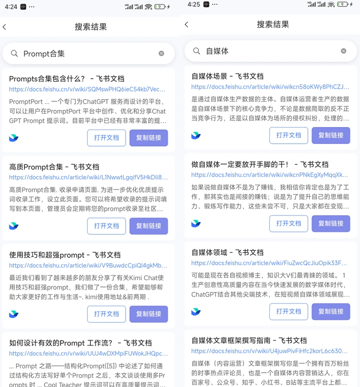- 比较新奇的工具,支持一键检索飞书文档内容