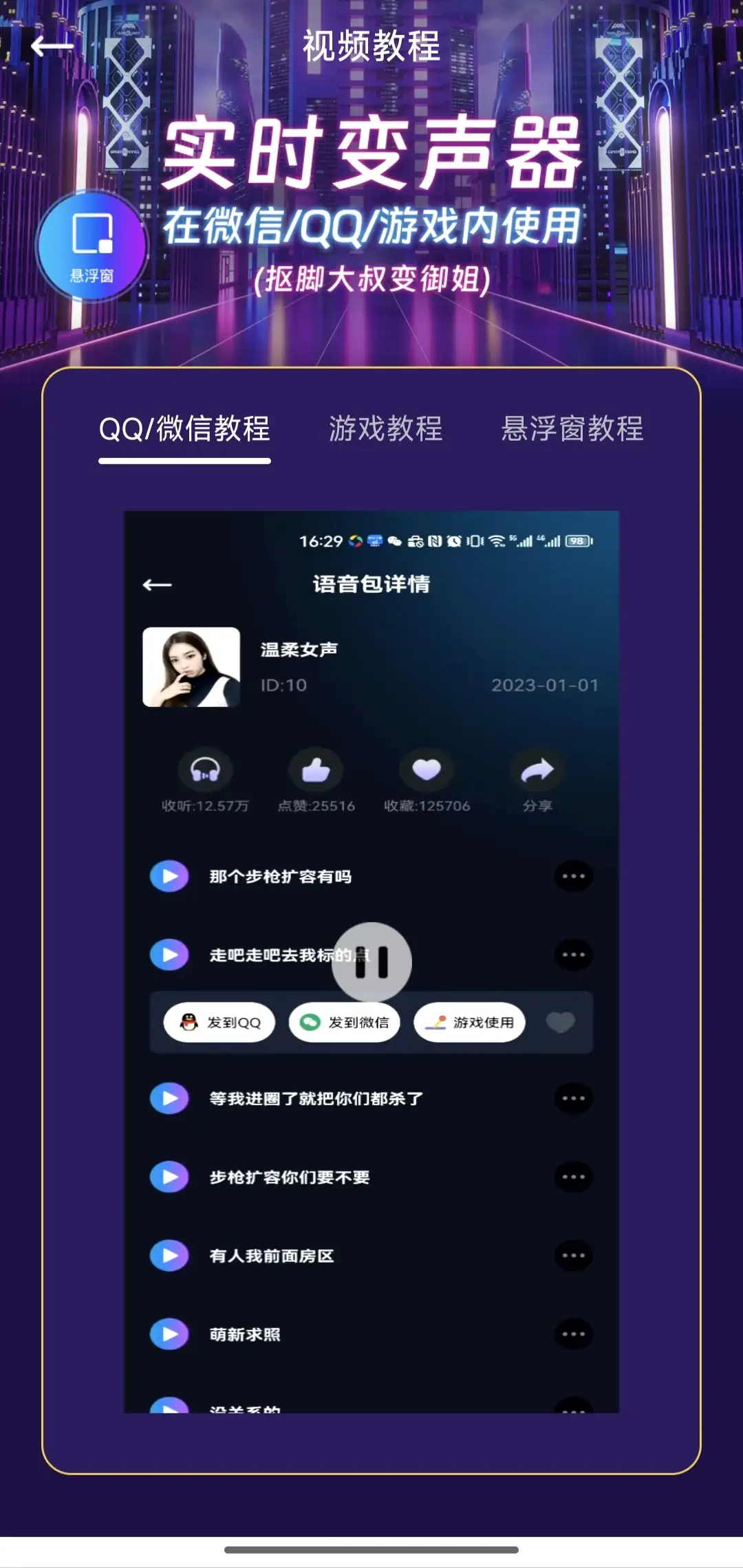 • 一款很火的手游语音变声器,可随意选择自己需要的声音风格进行切换