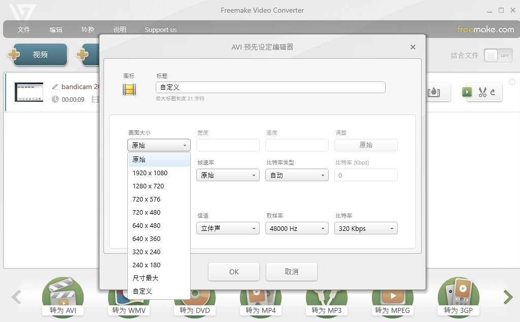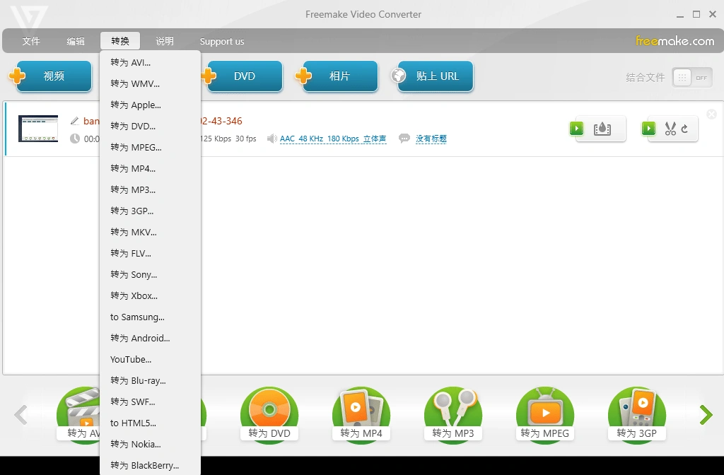 - 一款功能强大的免费视频转换软件,支持众多的视音频、DVD及图片格式,输出格式包括AVI、MP4、WMV、3GP、DVD、MP3、YouTube及iPod、iPhone、iPad、Android等设备格式。可以非常便捷的方便我们对视频格式进行转换。