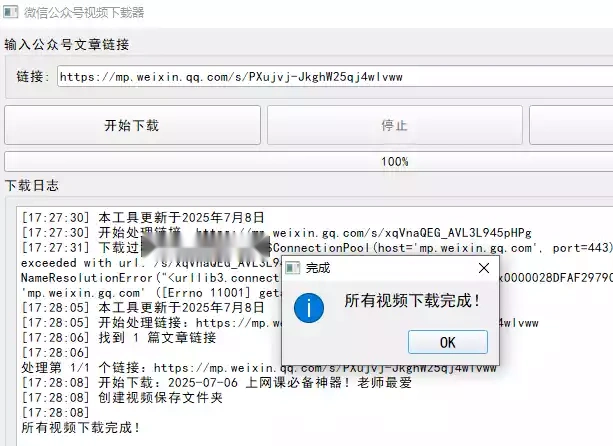 • 需要注意的是,公众号文章的链接一定要正确,否则是下载不成功的。