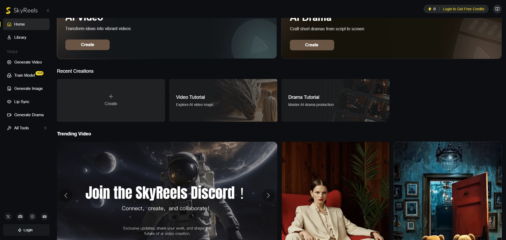 - 提供多种功能,包括视频生成、短剧创作、图像生成和口型同步等,可以通过简单的脚本输入,快速生成短剧,或者利用平台的工具创建各种风格的视频,如科幻、冒险等。