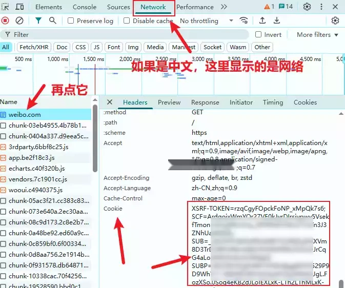 - 找到如下图所示的就可以了,框出来的就是cookie值,双击它就可以全选然后复制就可以了。