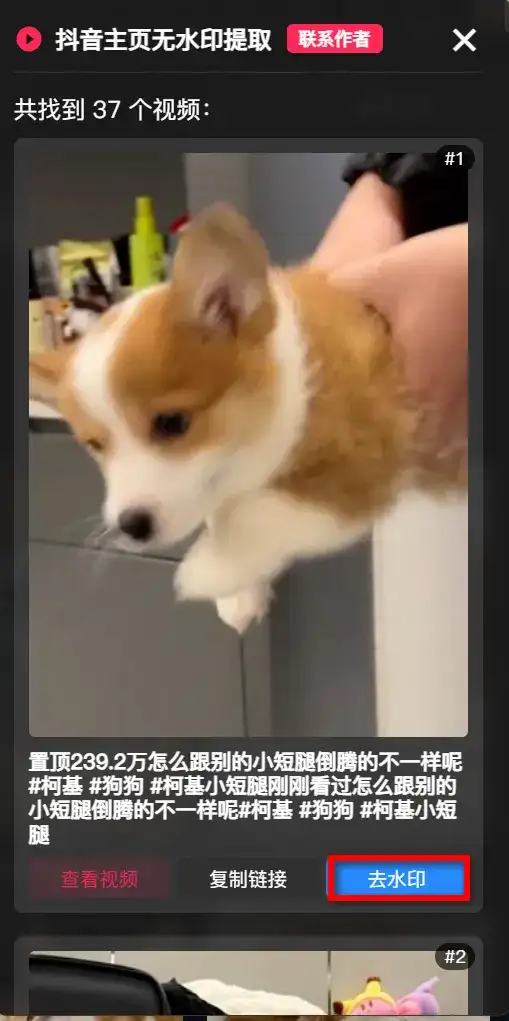 找到你想下载的视频,点击“去水印”按钮即可下载。实测保存的视频是1080p高清画质,清晰度超高,观看体验极佳。