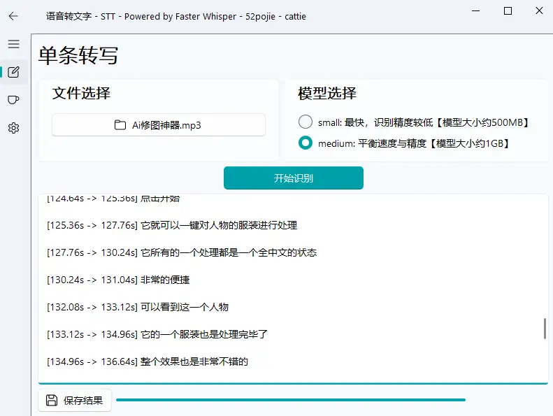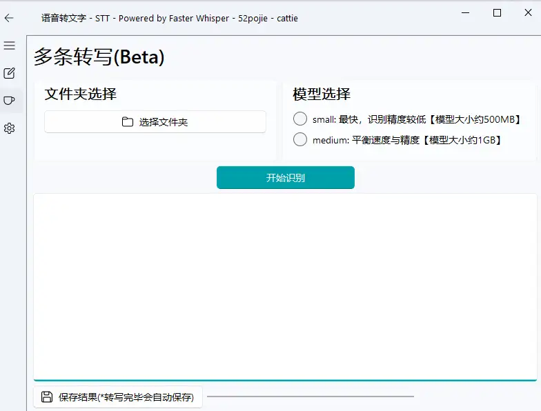 - 这款工具就是利用这个模型打造的外壳,支持一键将录音转换为文字。
