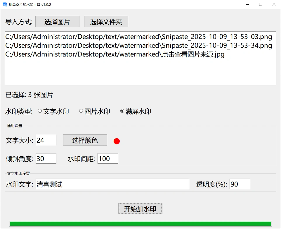 • 这是一款非常强大且使用简单的图片批量添加水印工具,支持导入单个图片和选择整个文件夹的所有图片导入