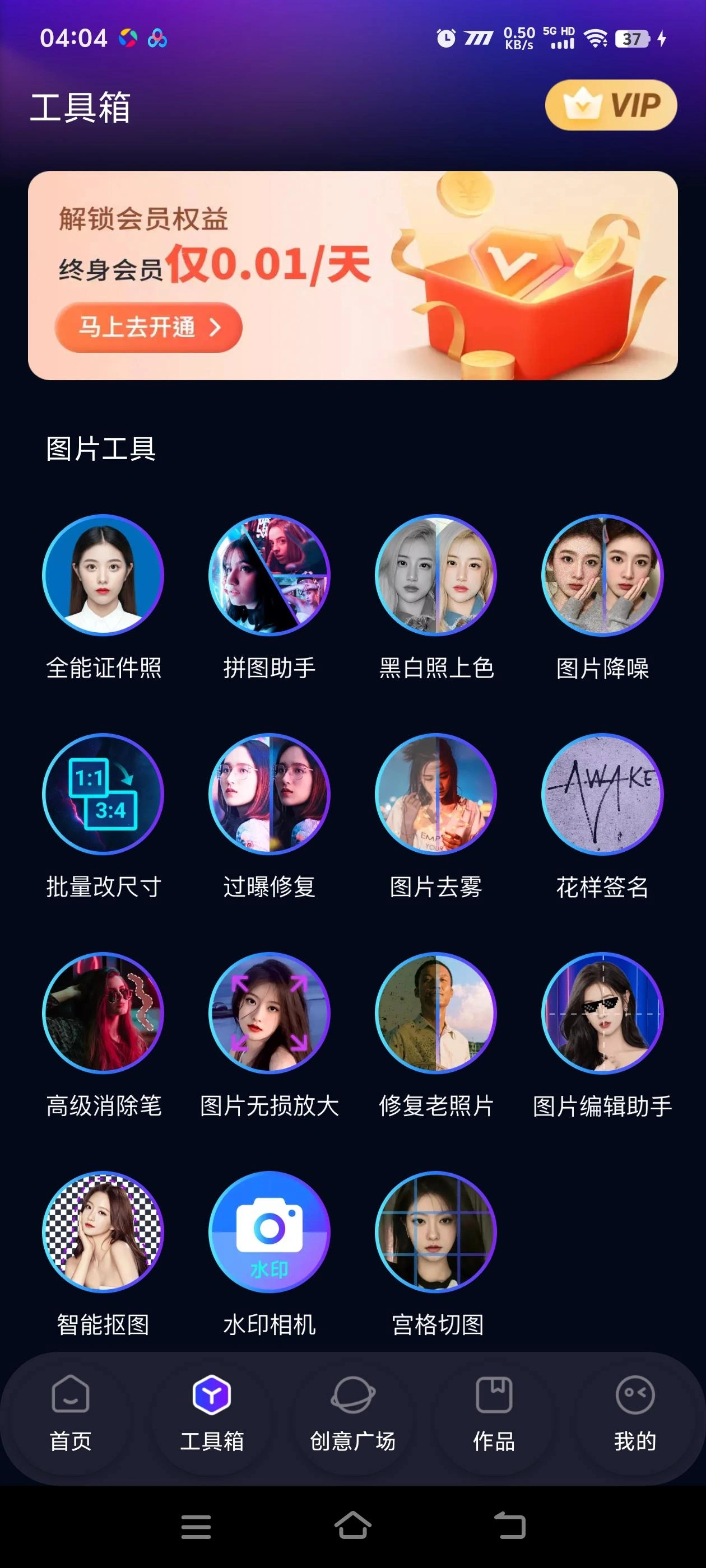 • 打开软件就能轻松找到文字生图、风格选择、智能抠图、老照片修复等热门模块。