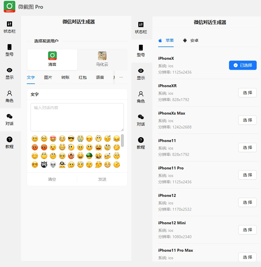 模拟真实的微信对话界面,逼真度高,且使用简单