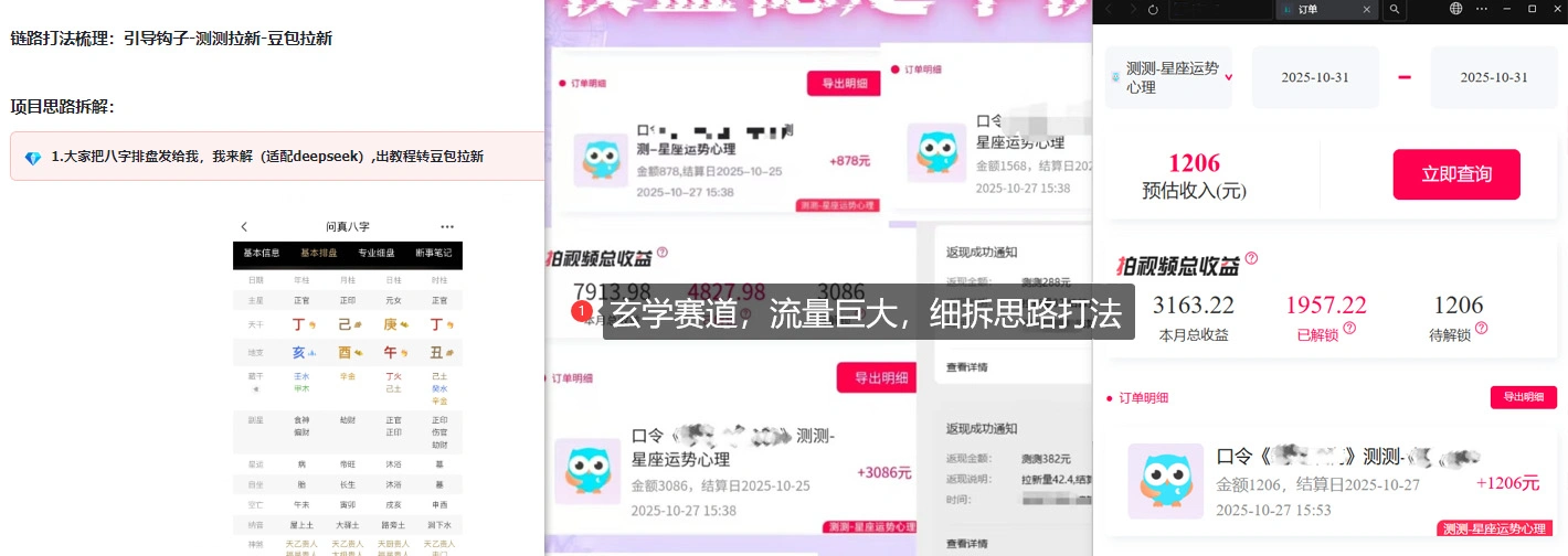 🔮 最近刚上线的“占星测测”项目,踩中了流量超旺盛的玄学赛道。我一直专注拆解新出项目,核心就是抓住“早入局早获利”的逻辑,这个占星项目正处于初期阶段,竞争压力特别小。我针对性梳理了一套实操思路,还专门做过一轮市场测试,确认它就是同行少、流量足的蓝海机会,想入局玄学领域的朋友别错过。
