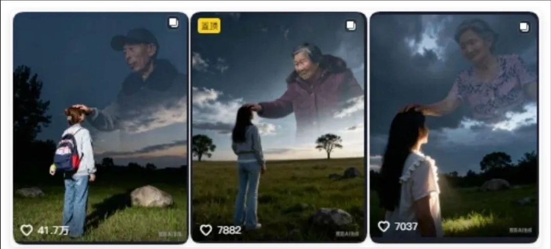 💌 深夜翻起手机里的老照片,指尖划过熟悉的笑脸,许多人都会涌起对逝去亲人的思念,遗憾未能再多见一面、多说一句话。如今数字技术为这份思念提供了温暖的寄托方式,AI修复老照片、让老照片动起来等形式逐渐流行,其中抖音上一组AI合成的“亲人天空摸头合照”更是收获41.7万点赞,画面中逝者温柔抚头的模样仿佛从未离开,而这样的照片用豆包APP就能轻松制作,操作简单到1分钟即可上手。