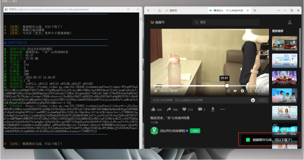 开始下载: 打开微信视频号页面,页面会自动注入下载按钮,点击按钮即可下载。