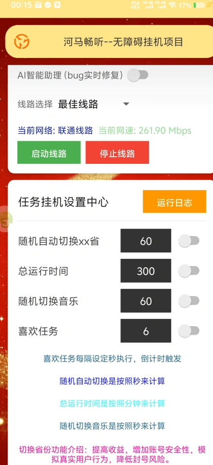 - 这款河马畅听挂机助手,能实现全自动播放挂机,全程不用手动操作,省不少事。